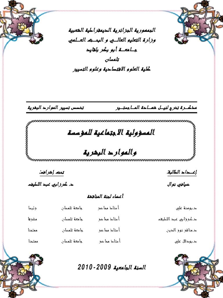 المسؤولية الاجتماعية للموسسة و الموارد البشرية ضيافي نوال Pdf