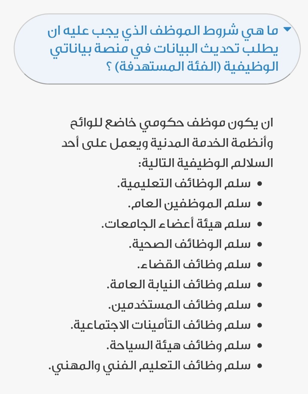 محمد أحمد الألمعي On Twitter منصة بياناتي الوظيفية الفئات المستهدفة بالتحديث في منصة بياناتي الوظيفية كل موظف حكومي خاضع للوائح وأنظمة الخدمة المدنية ويعمل على أحد السلالم الوظيفية الموضحة في الصورة المرفقة