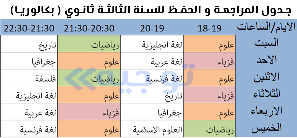 جدول زمني مقترح لتنظيم وقت المراجعة 3 ثانوي مدونة حلمنا العربي