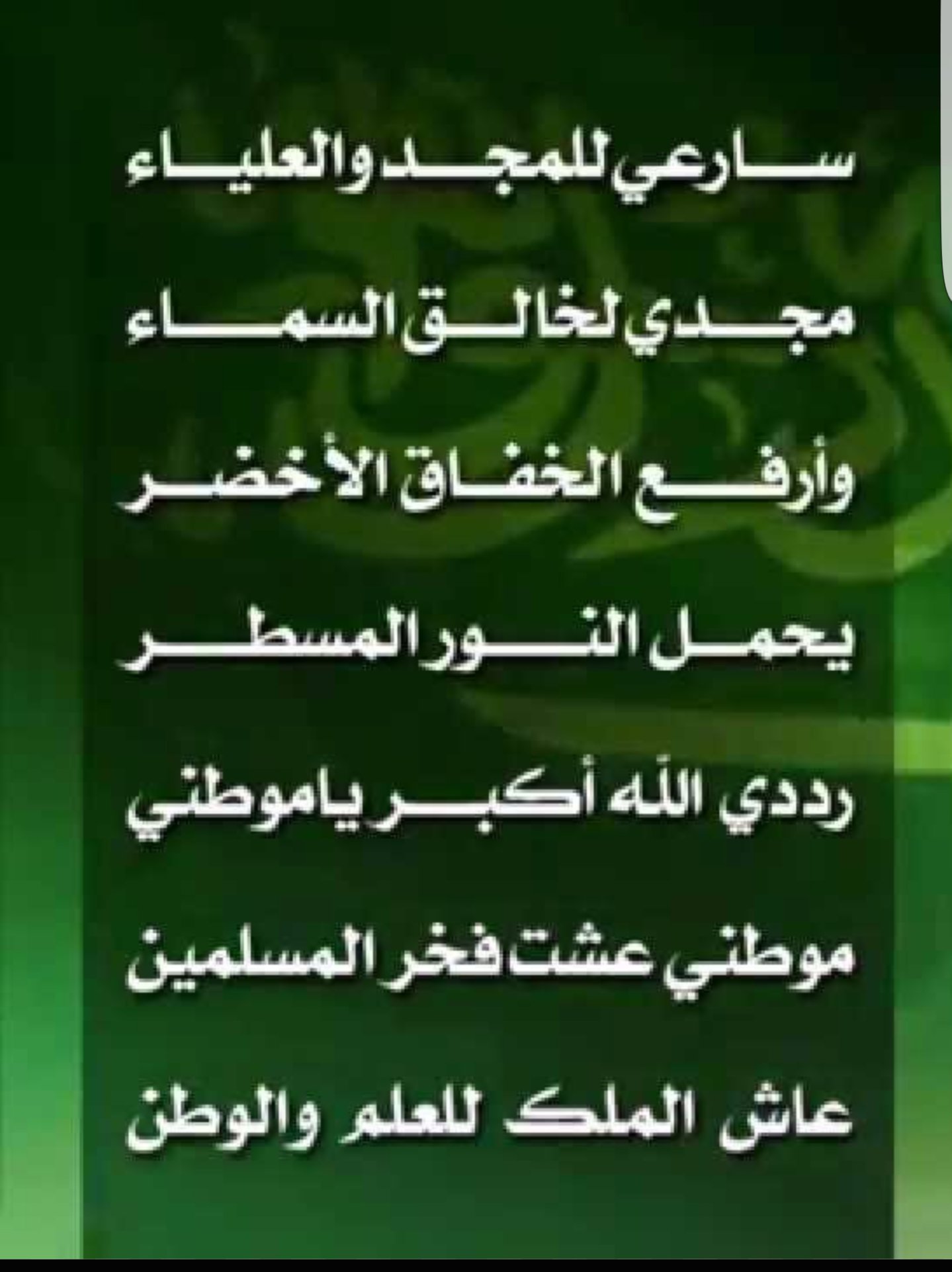 جابر الهاجري On Twitter غرد عن حب السعوديه سارعي للمجد والعلياء مجدي لخالق السماء وارفع الخفاق الاخضر يحمل النور المسطر رددي الله اكبر ياموطني موطني قد عشت فخر المسلمين عاش الملك للعلم والوطن