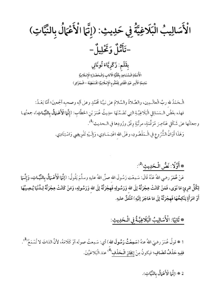 ال أ س ال يب ال ب ل اغ ي ة ف ي ح د يث إ ن م ا ال أ ع م ال ب الن ي ات ت أ م ل و ت ح ل يل